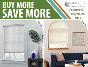 For a limited time* SAVE BIG when you buy select Lafayette Interior Fashions window shades: